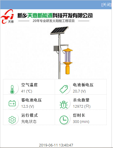 支持手機(jī)App與Web端控制,具有豐富的狀態(tài)信息展示,足不出戶(hù)就可以了解一切,如地理位置、設(shè)備編號(hào)、基地名稱(chēng)、物聯(lián)網(wǎng)卡卡號(hào)、剩余流量、卡有效期、殺蟲(chóng)次數(shù)、GSM天線(xiàn)連接是否正常等故障報(bào)警信息。可遠(yuǎn)程控制、查看設(shè)備的當(dāng)前工作狀態(tài)、信號(hào)強(qiáng)度、電量使用等情況。